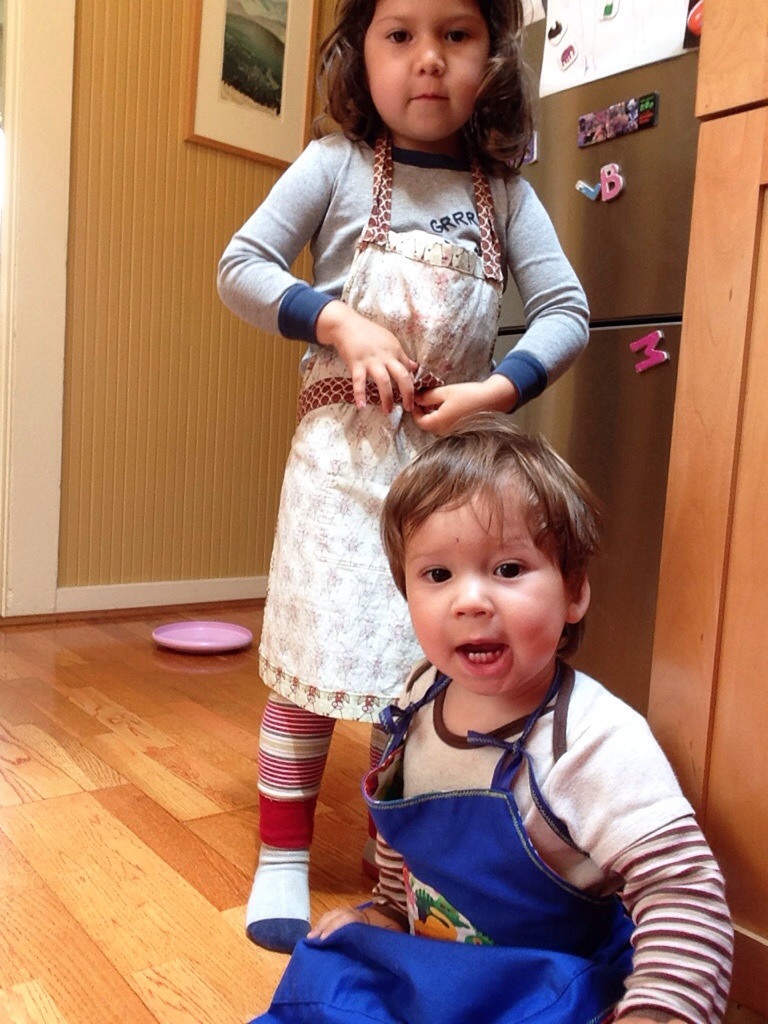 Then on Wednesday baby bro slept for two hours straight (not common) so P and I got to really find our bit of peace. We each worked alone first. She fed all her babies and tucked them in to bed while I cleaned up breakfast, made lunch, and prepped dinner (go mom go!). Then we had a tea party on the kitchen floor with hot milky drinks. We shared a delicious cookie. She sat in my lap.