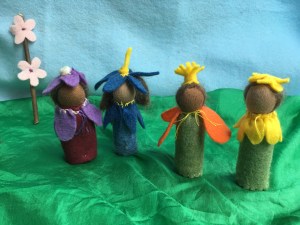 It it SO sweet to me, to see her loving and loving these stories and images. She pulled out the root babies and spring babies I had surprised her with in the past, to play with and tell her own stories, and we made some new flower children for springtime.