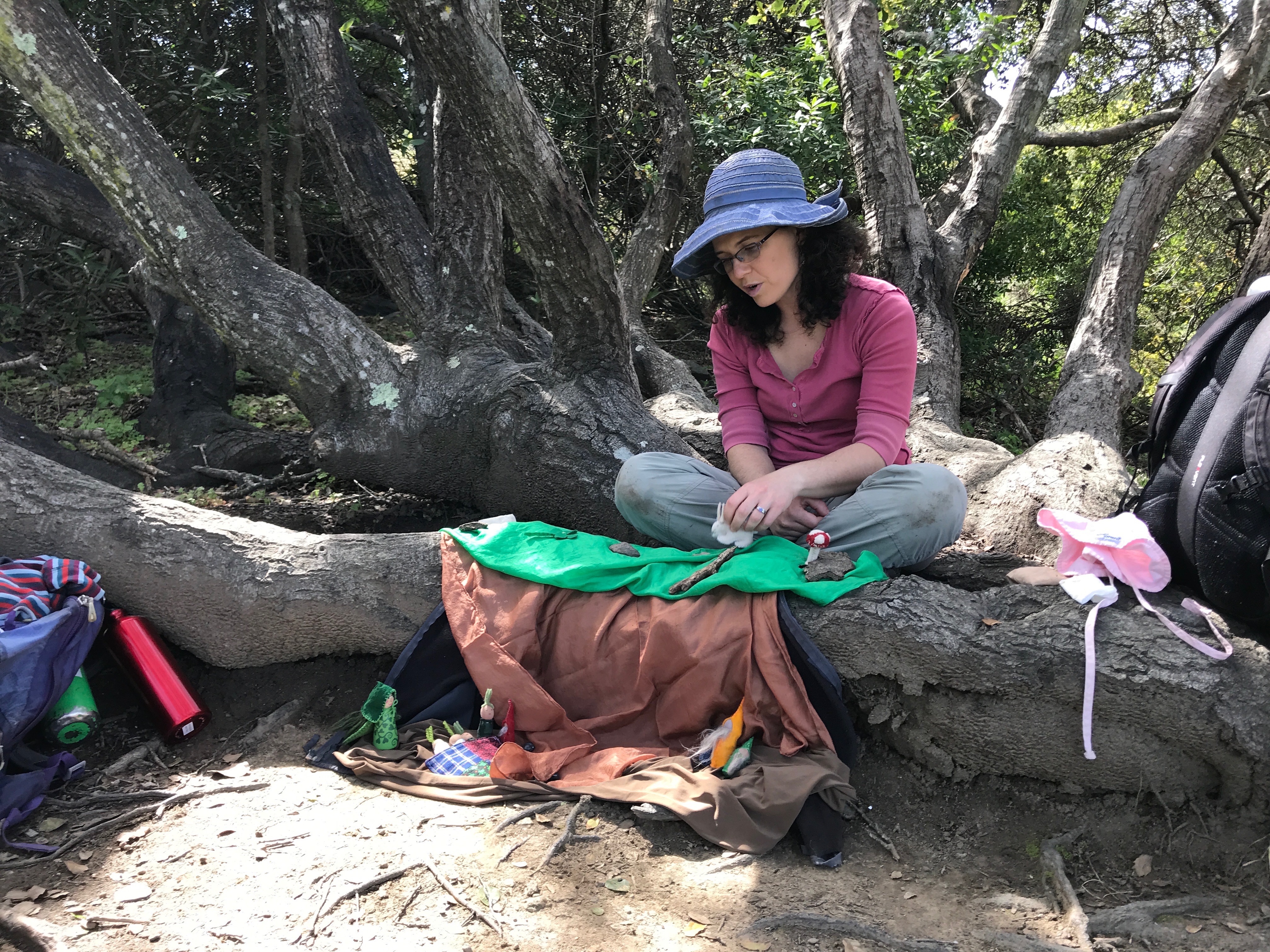 Our flower children are local to our region: Wild Plum Blossom, Blue-Eyed Grass, California Poppy, and California Buttercup, from left to right. And in green is Mother Earth, about to awaken the sleeping the root children. Happy Spring!
